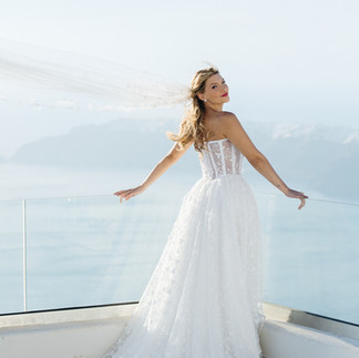 E nada combina mais com Santorini do que uma noiva segura, leve e fiel ao seu estilo.